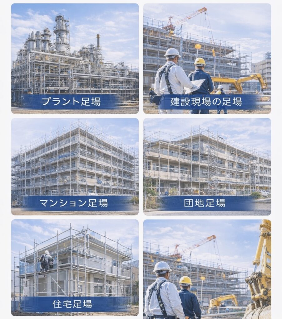 様々な建設現場の足場工事を行っています。